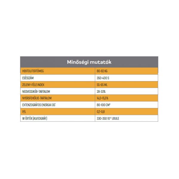 Kiváló alkalmazkodóképességű őszi búzafajta, amely kedvező körülmények esetén kiemelkedő hozamokra képes. Malmi minőségű, magas nyersfehérje-tartalommal rendelkezik. Fagy- és télállósága kiváló. Termőképessége az állami fajtakísérletekben 3 év átlagában 7,29 t/ha volt, 2,1%-kal meghaladva a standard fajták átlagát.