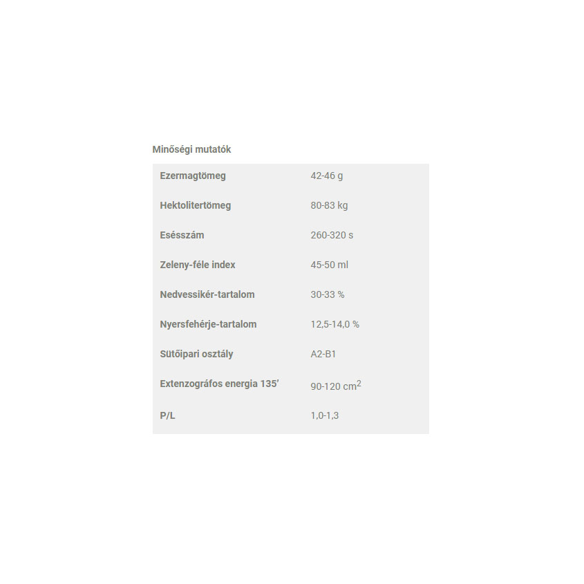 Évjárattól függetlenül magas terméshozamokra és malmi minőség elérésérealkalmas, kiváló tápanyag-reakciójú, intenzív fajta. Szinkronkalászolású, tehát a sarjkalászok is főkalász jellegűek, ezért érése egyöntetű, tisztán – nagy nettó kihozatallal – aratható. Kiemelkedő terméseket főként a dunántúli és az észak-keleti területeken, valamint évek óta Romániában produkál.